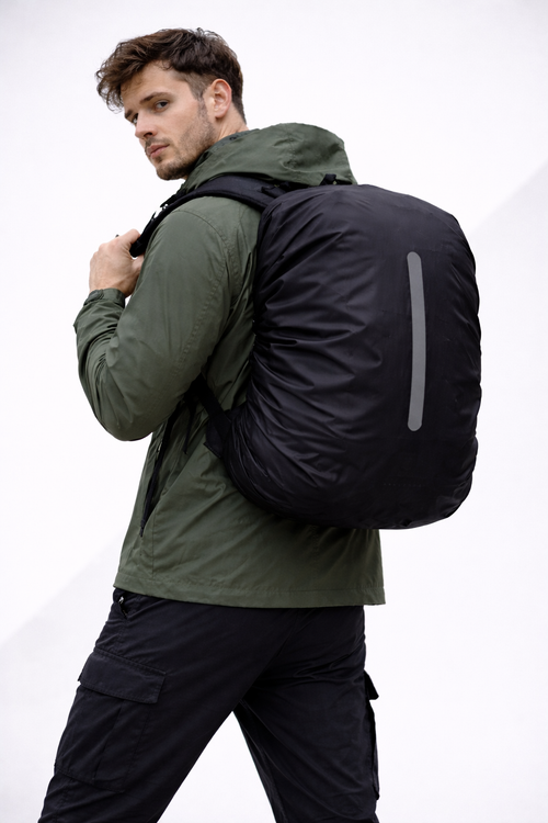 Housse imperméable et réfléchissante pour protéger votre sac en randonnée, vélo ou camping.